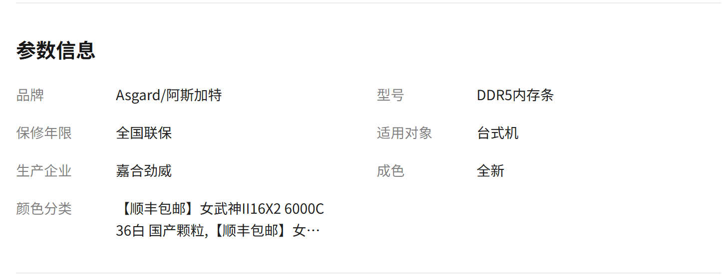 阿斯加特 女武神DDR5台式机RGB内存条16G/32G/6