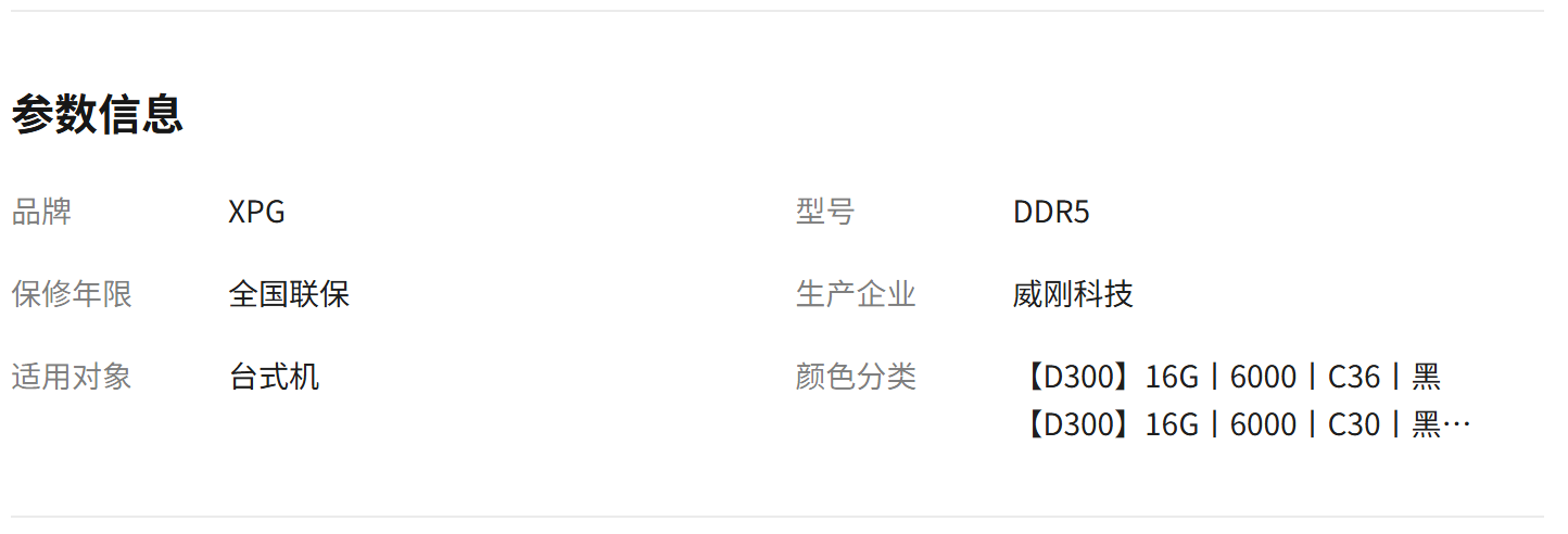 威刚XPG D300G DDR5内存条RGB灯条16/24/