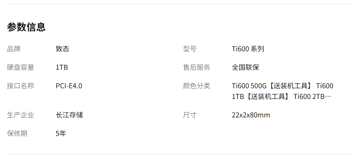 致态(ZhiTai)长江存储Ti600 1TB M.2笔记本