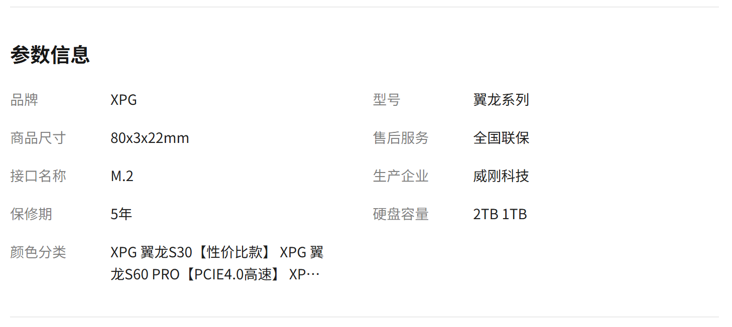 威刚XPG S70/S60 M2固态硬盘SSD 1TB/2T