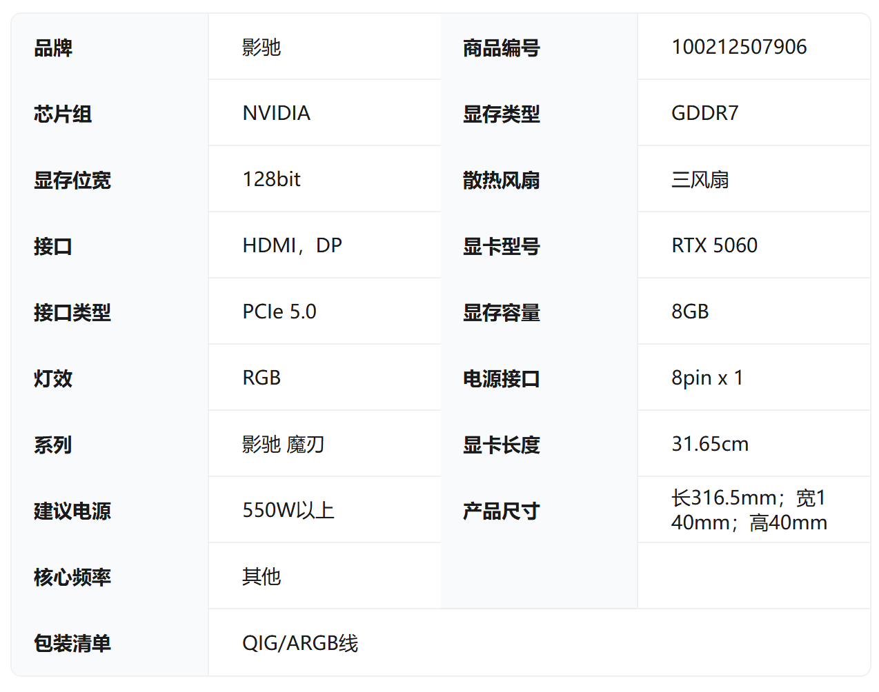 影驰 GeForce RTX 5060 魔刃 8G GDDR