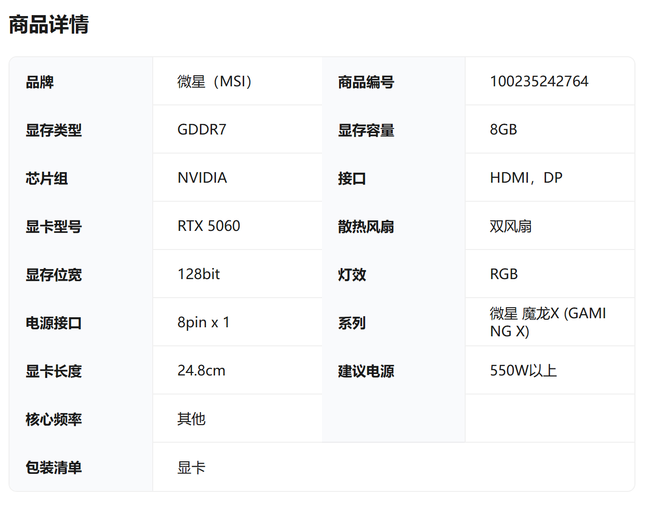 微星(MSI)魔龙 GeForce RTX 5060 8G