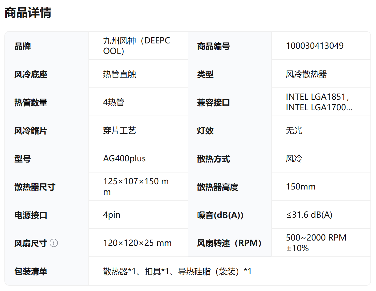 九州风神(DEEPCOOL)玄冰400V5PLUS CPU电