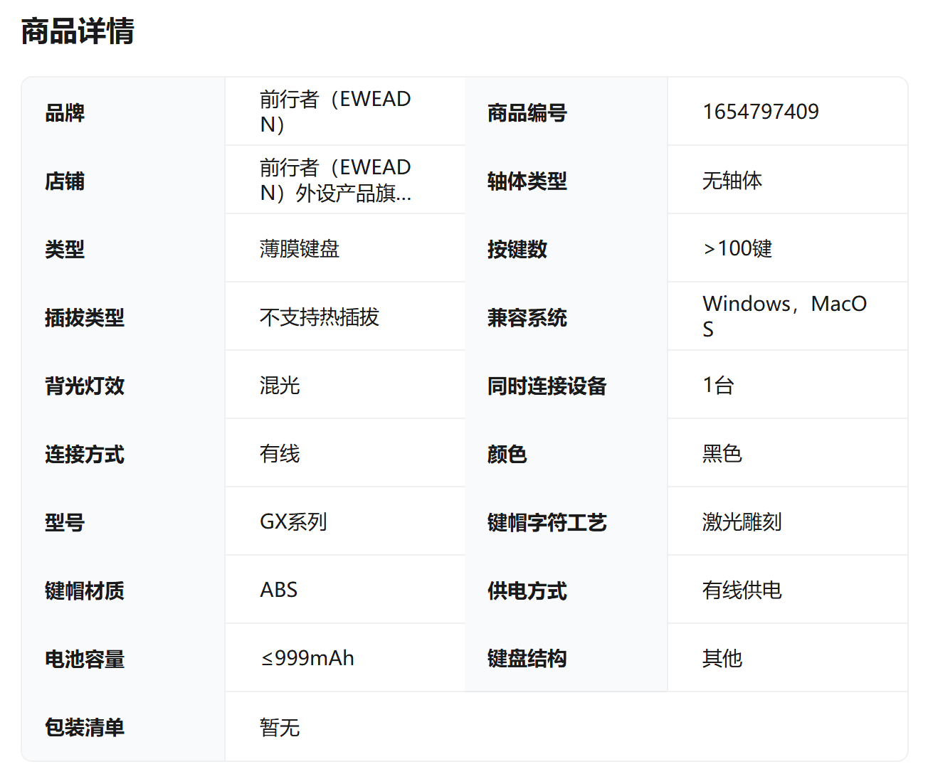 前行者GX 87键真机械手感游戏键盘鼠标套装有线静音薄膜键鼠