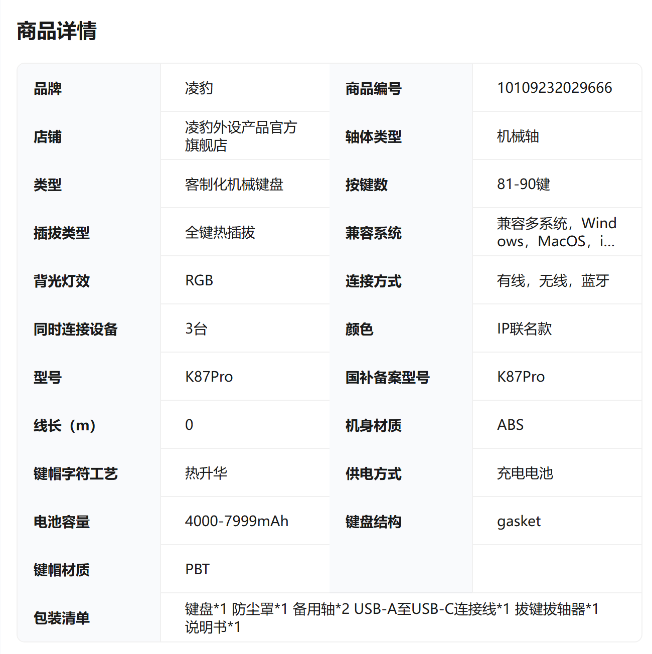 凌豹K87Pro客制化机械键盘无线蓝牙三模全键热插拔gask
