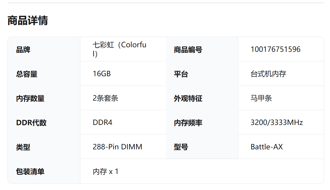 七彩虹(Colorful)16G(8G*2)DDR4 320